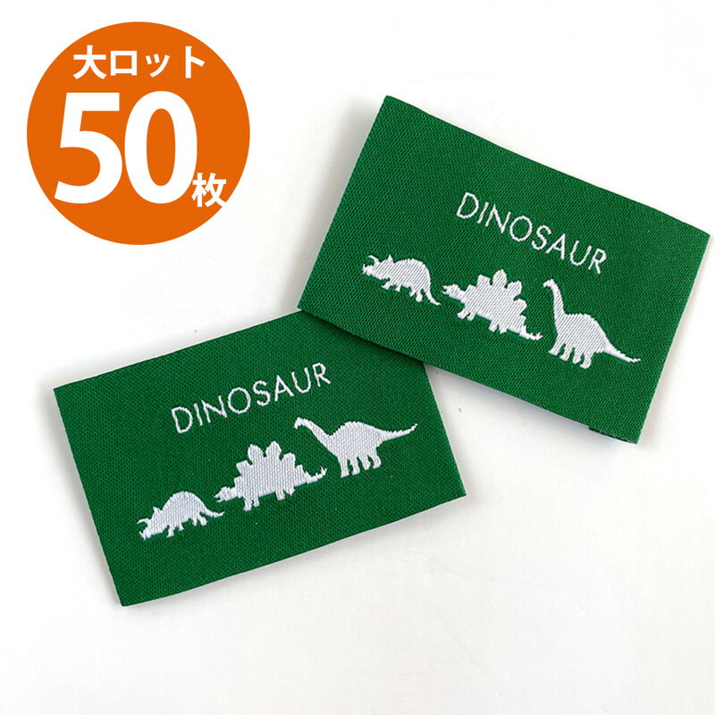 ハンドメイド タグ 大ロット販売 og19 刺繍タグ 大きめタグ 恐竜 Dinosaur(50枚セット)