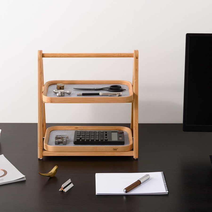 ALFA Desk organaizer rack Sは、シンプルでスタイリッシュな折りたたみ2段ラックです。