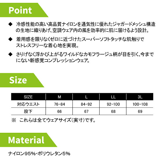 ◇さりげなく浮かび上がるワイルドなカモフラージュ柄が目を引く・今までにないコンプレッションウェア。