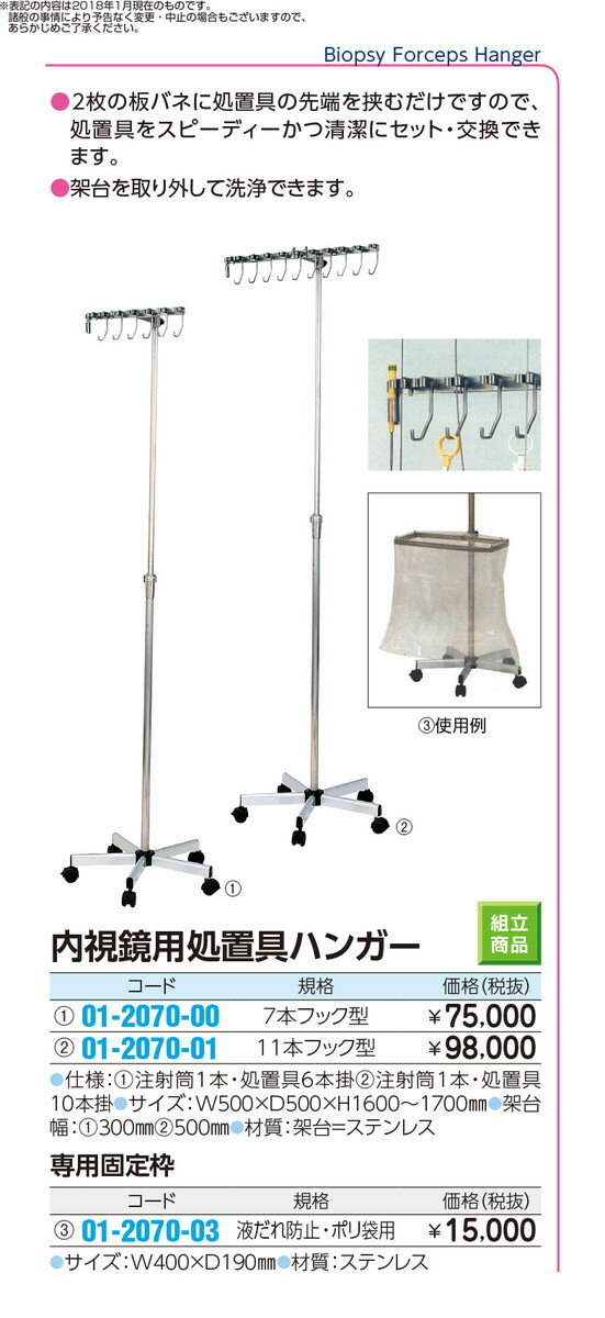 【病院専用商品】内視鏡用処置具ハンガー専用固定枠 エキダレボウシポリブクロヨウ品番 01-2070-031入り 医療機器対象外 専門科目 内視鏡室・心カテ室・超音波診断 定価\15000 JAN 4582105370500 ●商品説明 ●内視鏡用処置具ハンガー用の専用固定枠になります。