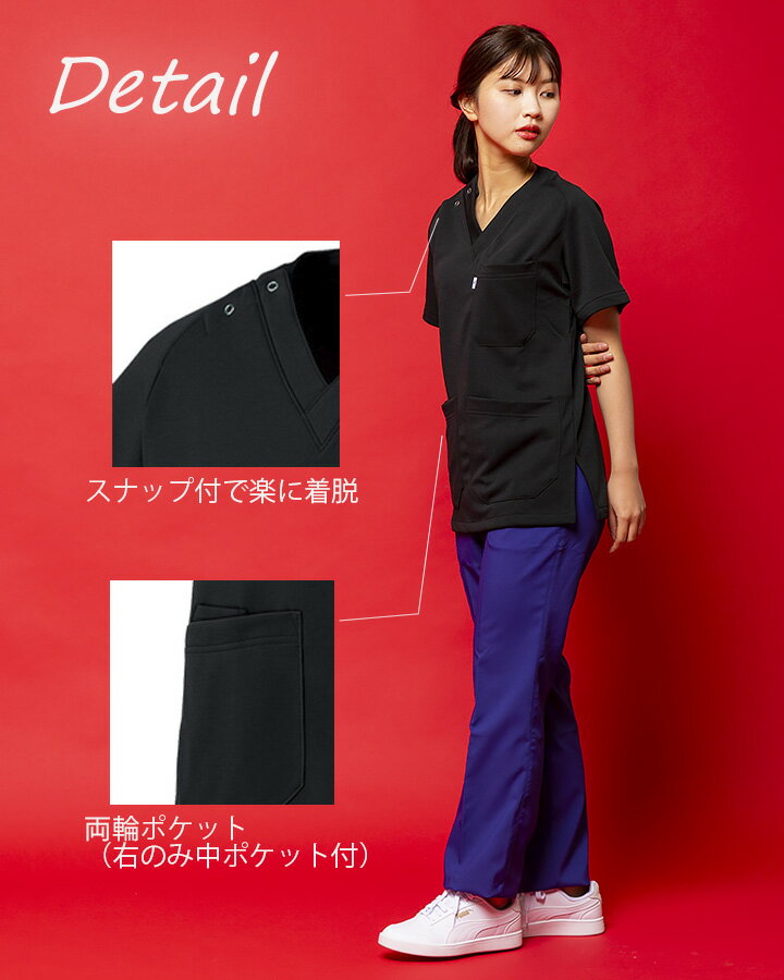 ■商品名:ニットスクラブ(兼用) ■サイズ展開:SS〜5L ■素材:ニット ■混率:ポリエステル100% ■仕様:Dynamotion Fit、左胸ポケット(PHSポケット付)、両脇ポケット(右のみ中ポケット付)、両脇スリット ■機能:ストレッチ、吸汗速乾、透防止Size Information SS:肩幅 41cm/バスト 92cm/着丈 67cm/そで丈 19.5cm S:肩幅 42cm/バスト 96cm/着丈 68cm/そで丈 20cm M:肩幅 43.5cm/バスト 102cm/着丈 71cm/そで丈 21cm L:肩幅 45cm/バスト 108cm/着丈 72cm/そで丈 21cm LL:肩幅 46.5cm/バスト 114cm/着丈 73cm/そで丈 21cm 3L:肩幅 48cm/バスト 120cm/着丈 74cm/そで丈 21cm 4L:肩幅 50cm/バスト 128cm/着丈 75cm/そで丈 22cm 5L:肩幅 52cm/バスト 136cm/着丈 75cm/そで丈 22cm関連アイテムはこちら mz-0136 mz-0084-b mz-0047 mz-0018-a mz-0058
