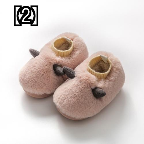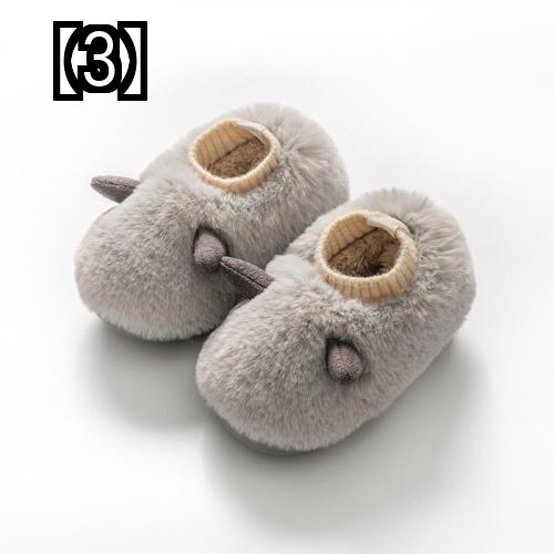 ルームシューズ 子供 もこもこ かわいい かかと付き ベビー 女の子 男の子 滑り止め 厚底 あったか 冬 耳 ピンク グレー 黒